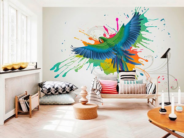 Si vous allez accrocher des peintures murales dans la zone de loisirs, choisissez une gamme calme de couleurs d'image. Si le fond d'écran photo est dans la zone active, au contraire, il est bon de choisir des images colorées avec des couleurs vives et dynamiques.