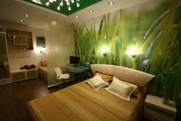 - N'oubliez pas la palette de couleurs dans la pièce. Les couleurs dans l'image du papier peint photo et à l'intérieur de la pièce doivent être dupliquées.