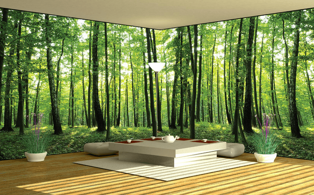 - Modifiez le volume de la pièce. Par exemple: en collant des peintures murales panoramiques, vous agrandirez la pièce.