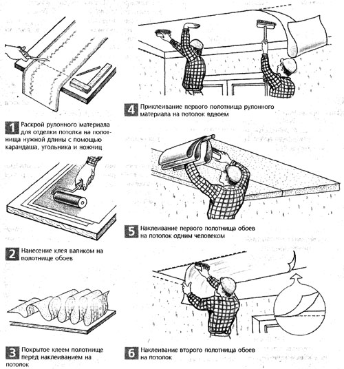 Pointe. Afin d'éviter l'apparition de taches jaunes à la surface du papier peint, vous devez préparer correctement le plafond. Il est préférable que la surface entière soit pré-apprêtée.