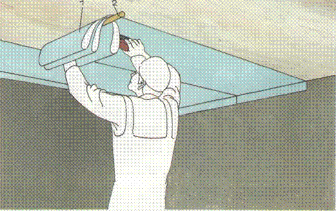 - La surface entière du plafond doit être nettoyée des restes des anciens matériaux de finition et traitée avec des outils spéciaux.