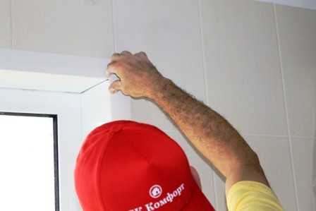Este método de instalação garantirá que as inclinações sejam fixadas em três lados e não serão travadas. Parafusos autorroscantes para fixação ao peitoril da janela e à parte superior da encosta é melhor usar sem broca!