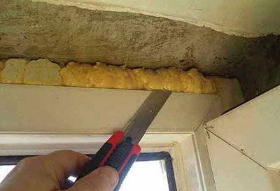 Antes de começar a fixar o painel sanduíche para decoração de interiores nas pistas, você deve remover o excesso de espuma que resta após a instalação dos blocos de janela. Isso pode ser feito com uma faca afiada com uma lâmina retrátil.