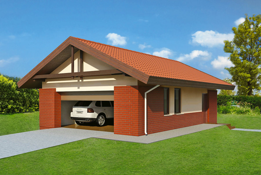 A propósito, a garagem rebocada também parece muito boa. Ao mesmo tempo, para a construção de paredes, você pode usar tijolos de construção comuns, que são muito mais baratos que os tijolos da frente, e depois rebocá-los lindamente.