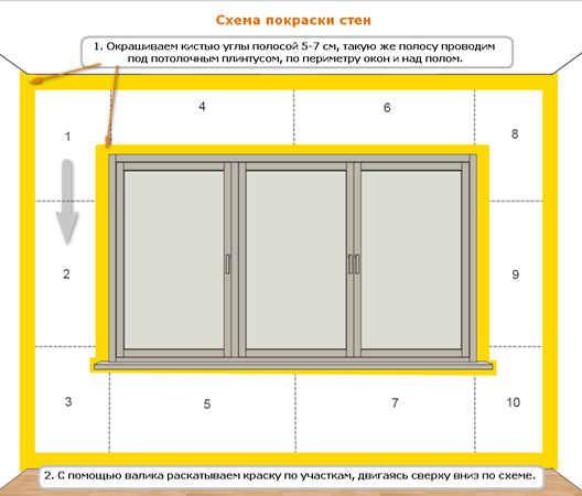 Dica: É necessário remover a camada superior da superfície da parede com uma espátula, limpe-a com uma lixa, deixando-a lisa. Ao pintar as paredes nas quais o papel de parede foi colado, a remoção da camada superior não é necessária. É o suficiente para preparar a superfície.