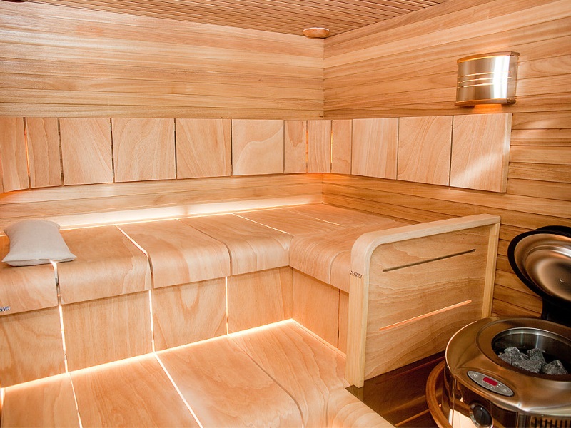 - O revestimento de lariço tem a propriedade de reter bem o calor, e o aroma sutil de resinas de madeira e a presença de produção volátil tornam possível criar um microclima exclusivo na sala que impede a reprodução da flora bacteriana. Ficar nessa sala será útil para resfriados e pessoas envolvidas na prevenção de doenças respiratórias.