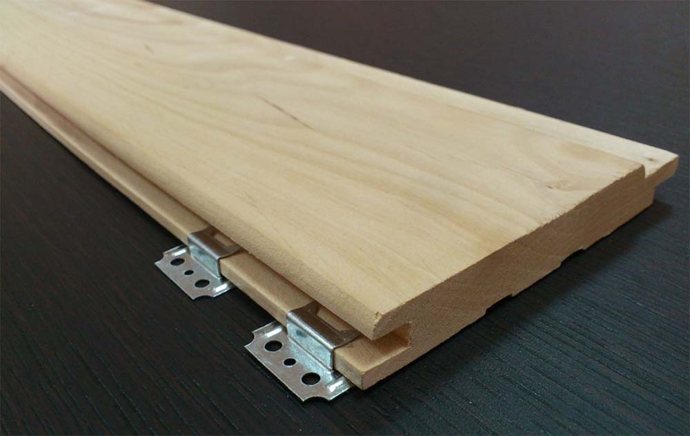 Para instalação, o revestimento possui um sistema de montagem com ranhura em espiga. Isso é muito conveniente e permite ocultar os elementos de travamento. Os fixadores ocultos são feitos com um kleimer de metal (grampo), cuja altura deve corresponder ao tamanho da ranhura da placa - para eurolinar é de 4 mm.