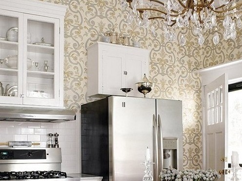 Uma opção ideal para uma cozinha é considerada um papel de parede de vinil.