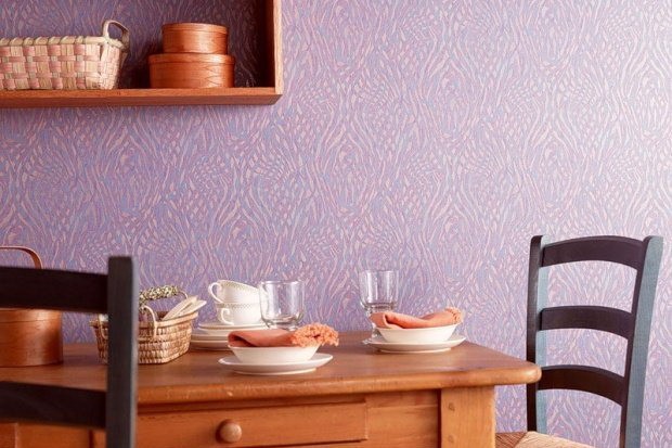 Acredita-se que o papel de parede feito de um material que repele a umidade seja ideal para a cozinha. Mas não é assim. Um revestimento fino de vinil não é particularmente forte e estável, e nem todo mundo vai gostar de padrões primitivos.
