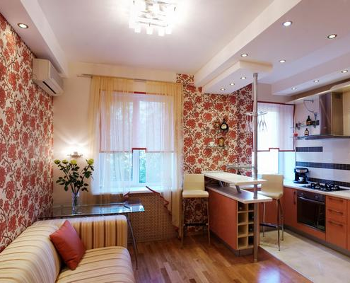 - Vale a pena dar preferência a revestimentos densos de papel de parede. É fácil determinar o grau de densidade por conta própria. Basta pressionar com força o rolo impresso; se o papel de parede dobrar facilmente, eles não serão adequados para a cozinha.