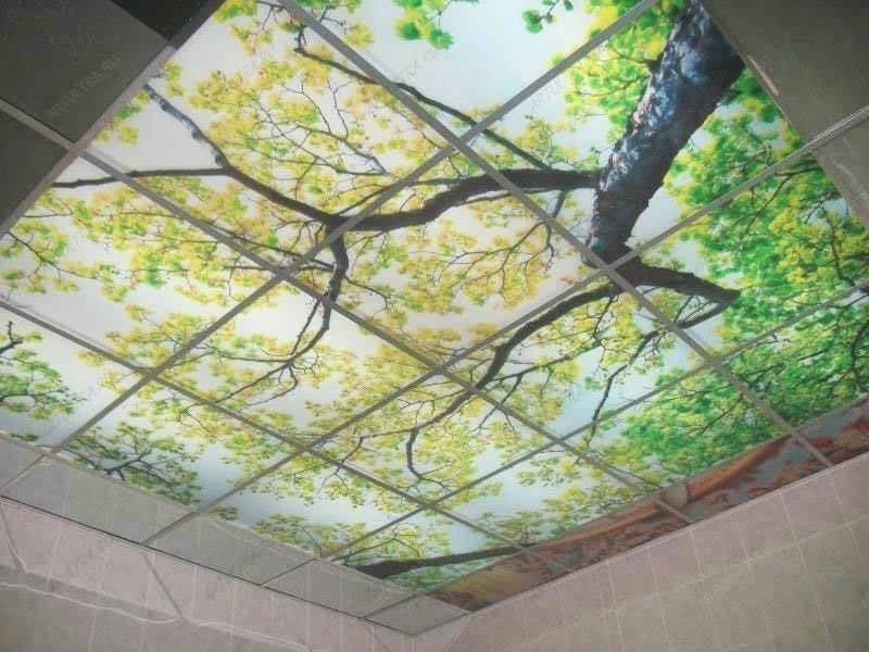 Atenção: Uma das principais vantagens dessa tela é sua alta resistência à umidade, pois é fabricada com cloreto de polivinila (abreviado como PVC), cujo tamanho não excede 2 × 3 metros. Um desenho é aplicado e, no topo, eles o cobrem com uma película protetora especial.