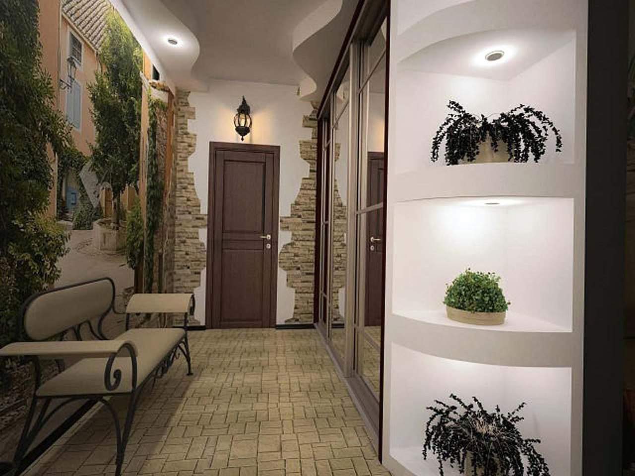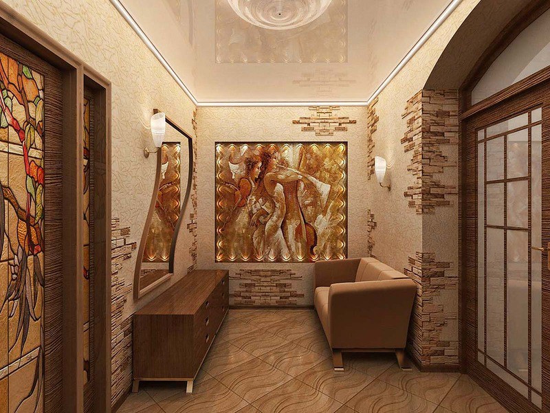 É muito mais fácil reparar e decorar a parede no corredor, se ela for espaçosa e tiver pelo menos uma janela, é muito fácil escolher um interior e um design para essa sala. E é muito difícil encontrar algo para uma sala pequena e escura.