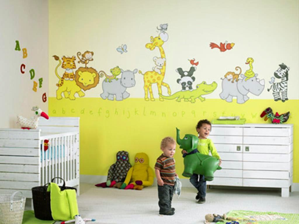 - Os murais ampliam visualmente o espaço da sala, mas, apesar disso, você não deve colá-los em todas as paredes, pois a ilusão visual resultante apenas desorienta a criança no espaço e trará uma certa dissonância ao interior.