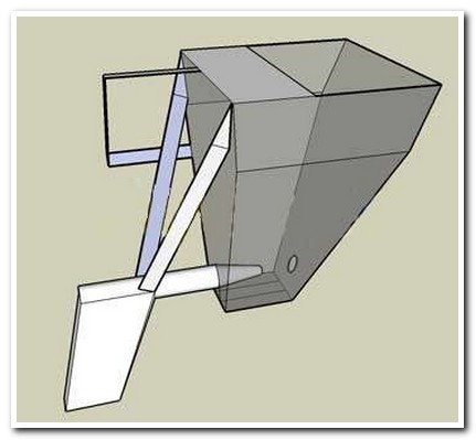 - O bico é ajustável para que, desde a parede frontal ou a saída, a distância seja de aproximadamente 20 milímetros. Nesse caso, a parte inferior do balde pode ser muito maior: 50 × 50 milímetros ou 70 × 70 milímetros.