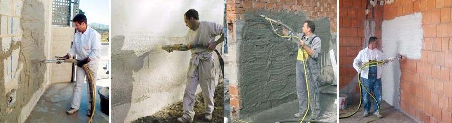- O uso de bicos especiais permite cobrir uma grande área em um período mínimo de tempo, enquanto grandes réguas e espátulas suavizam essa superfície em alguns minutos.