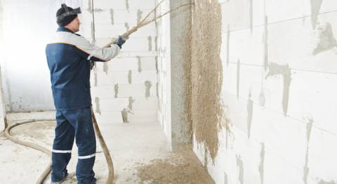 - Para melhorar a adesão do estuque com lascas de mármore, basicamente não há necessidade de secar toda a segunda bola e, em uma superfície levemente seca usando um triturador, misture com grânulos de cima para baixo. É necessário manter o bico a 50 cm da parede e manter a pressão uniforme - esta é a única maneira de obter um fluxo normalizado, impregnação profunda de componentes adesivos na própria estrutura das paredes.