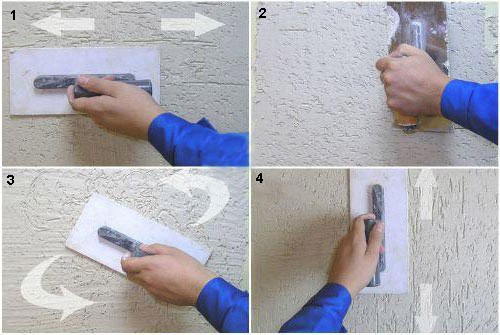 Ao formar uma camada decorativa, a superfície texturizada é criada com uma espátula ou ralador de plástico. A ferramenta é aplicada à superfície rebocada com todo o plano e é pressionada um pouco.