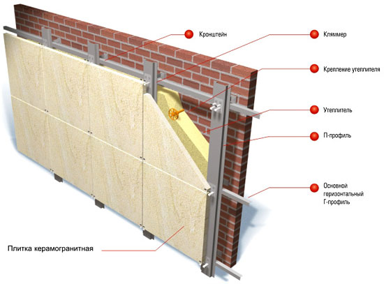 - O revestimento de fachadas de grés porcelânico na subestrutura permite a instalação em qualquer entressafra, requisitos mais baixos são impostos à superfície da fachada. O custo do trabalho é mais alto que o método anterior e é indesejável fazê-lo você mesmo.