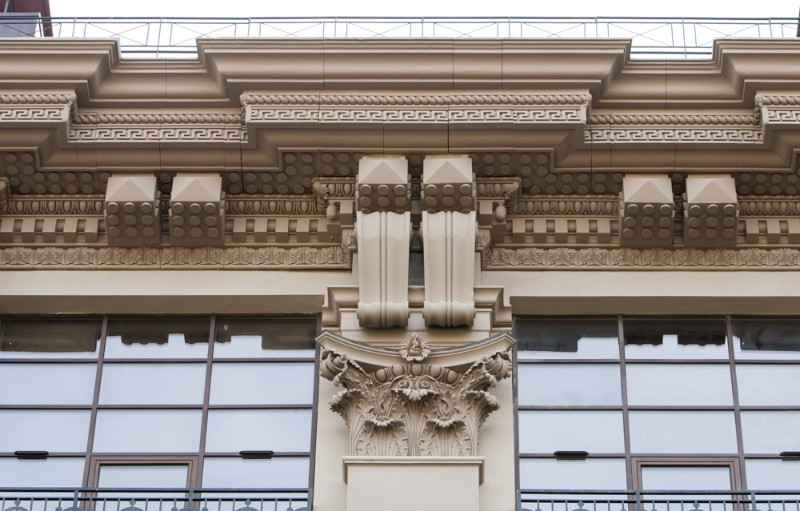 Materiais de revestimento modernos para fachadas incluem concreto de fibra de vidro. Detalhes exclusivos de decoração, ornamentos, heráldica e painéis são feitos a partir dele, que criam o efeito de "antiguidade", que permite o uso do material durante a restauração.