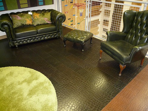 - A superfície da grés de porcelana imitando a pele parece igualmente magnífica. No próximo exemplo, você pode ver um exemplo desse revestimento de piso.