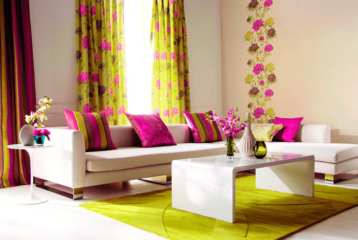 - Se a imagem na parede copiar as cores de um conjunto de cortinas, as fronhas das almofadas do sofá serão costuradas com o mesmo tecido das cortinas da segunda janela.