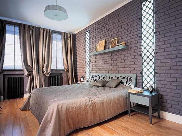 - Uma parede de tijolos é frequentemente pintada da mesma cor, sem costuras. E a cor da tinta, neste caso, pode ser usada de maneira muito diferente: do leite, ao chocolate ou preto.