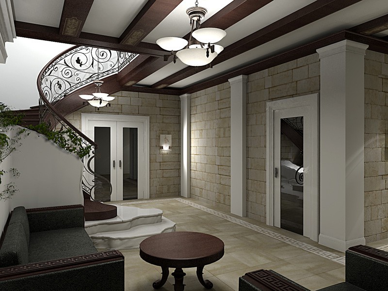 A superfície da alvenaria é feita de tijolos de silicato, tem uma aparência muito boa, permitindo sem dificuldades concluir o design de interiores das instalações. E esses estilos arquitetônicos, onde a alvenaria é deixada sem uma camada de gesso, são abundantes.