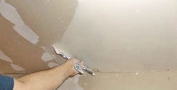 Le mastic est appliqué sur une base déjà préparée. Dans le cas des plafonds en béton, il s'agit de plâtre, les plaques de plâtre n'ont besoin que de sceller les joints entre les plaques.