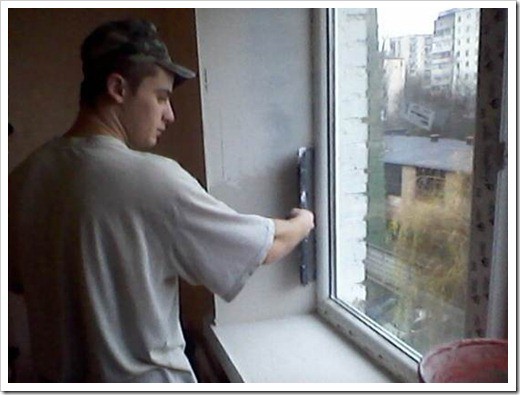 - Si l'installation a été effectuée correctement, il n'y aura pratiquement pas de trous entre les murs et les fenêtres, mais ils sont remplis de mousse de montage. Dès le moment du séchage, vous pouvez procéder au plâtrage des pentes des fenêtres.