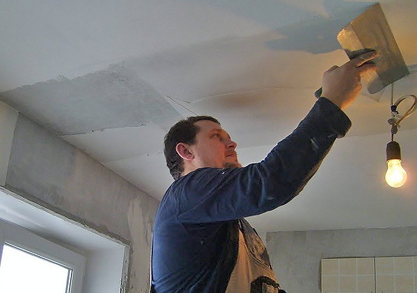 Attention: Dans les cas où des différences sont constatées sur la surface du plafond avec une profondeur ne dépassant pas cinq centimètres, des mélanges secs sont utilisés pour les niveler.