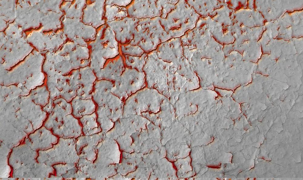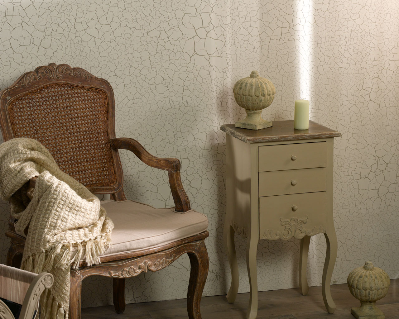 Un effet similaire est créé en raison du vernis craquelé appliqué sur la chape, qui se fissure sous l'influence d'additifs provoquant ce processus.