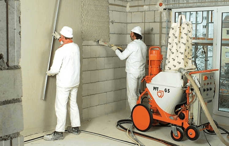 Une machine à enduire automatique applique le matériau sur un plan correctement préparé. De plus, vous ne pouvez pas faire la préparation des parcelles.