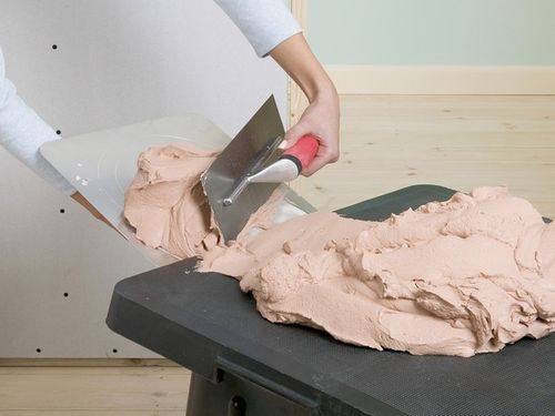 - S'il y a beaucoup de fissures ou d'irrégularités sur la surface de travail, une couche plus épaisse de mastic doit être appliquée, et pour cela, la solution doit être assez épaisse.