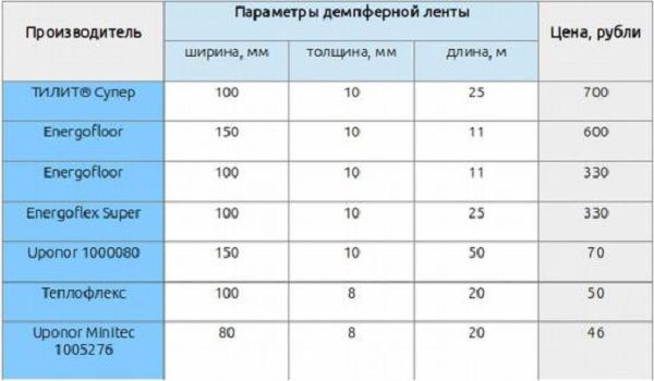 Le coût d'un rouleau standard d'un produit amortisseur dépend de la marque, de la longueur du rouleau, de la largeur du produit et du niveau de qualité. Les magasins offrent un assortiment de marques populaires Knauf, Energofleks, Teplofleks, Tilit-Super, Uponor, Leroy Merlin et d'autres marques. La gamme de prix des produits est large: de 50 à 700 roubles par rouleau. Les joints adhésifs sont plus chers.