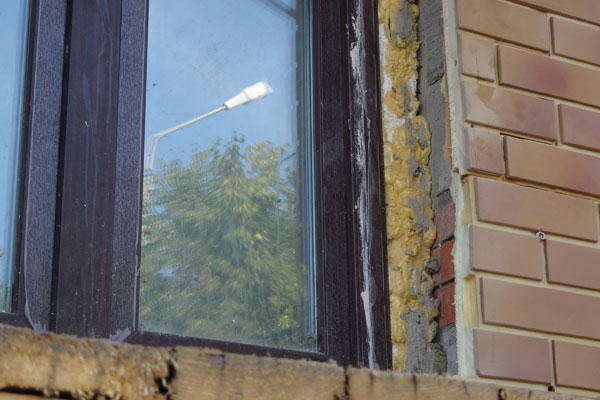 - Şeridin iç kenarı pencere kutusunun arkasına sarılır, daha sonra duvar ile gelecekteki eğim arasındaki boşluk köpükle doldurulur. Genişlerken, paneli pencere ünitesine sıkıca bastırır;