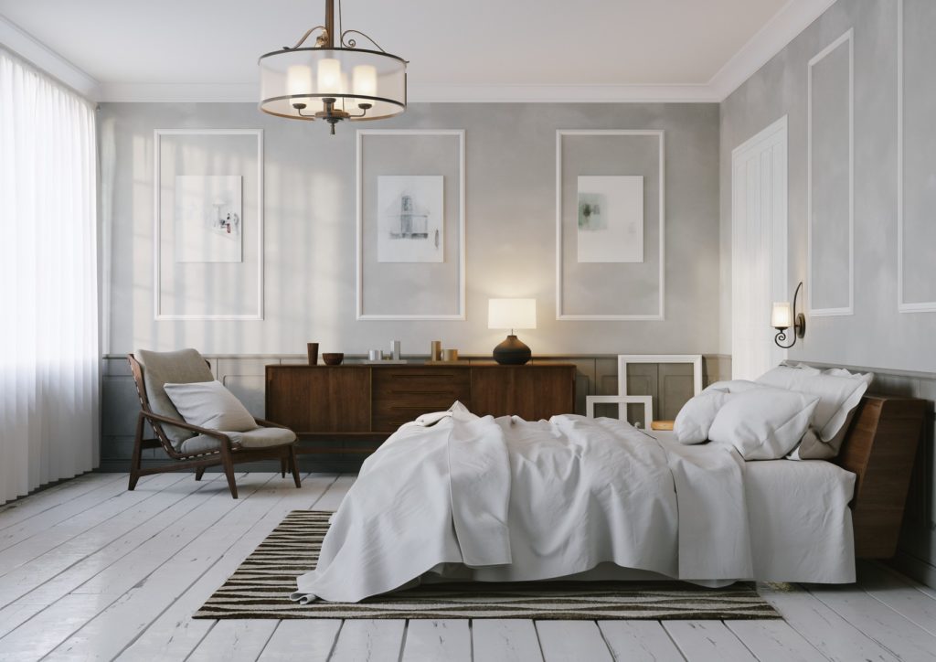 - Boyunca simetri: Amerikan klasiklerinde, katı klasisizmde olduğu gibi, eşleştirilmiş mobilyalar ve dekor unsurları baskındır. Bu, mobilyalar, fikstürler ve zeminden tavana kadar çeşitli yüzeylerin tasarımı için geçerlidir. Tabii ki, sandalyeler birbirlerine karşı durmalı, yemek masasını çerçevelemeli, yatak odasında aplikler yatağın her iki tarafına yerleştirilmeli ve oturma odasındaki avize tavanın ortasına asılmalıdır. Yerdeki halı da merkezde bir yer işgal etmeli ve aynalar duvarları eşit parçalara ayırmalıdır.