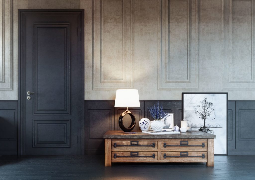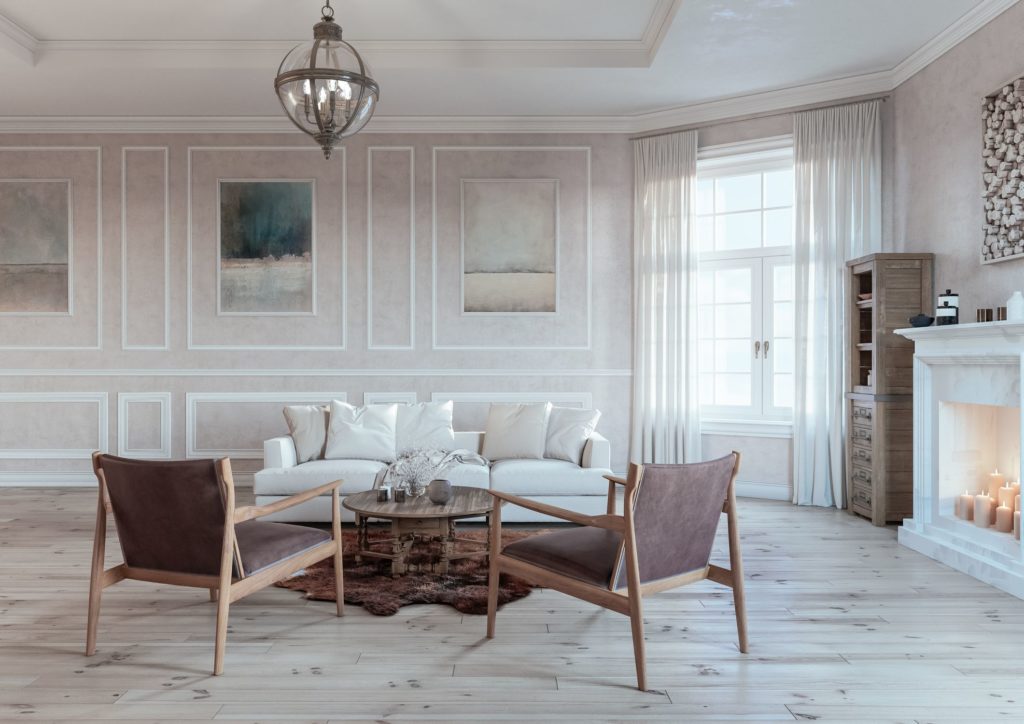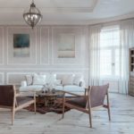 - Odakta - duvar dekorasyonu: stili korumak, odaların oranlarını görsel olarak iyileştirmek ve özel bir atmosfer yaratmak, mimari dekor kullanmak: geniş süpürgelik tahtaları, duvar panelleri, kalıp çerçeveleri ve tavan kornişleri - birlikte veya ayrı ayrı. Renkli olarak, bu elemanlar duvar kağıdının veya boyalı duvarın ana rengiyle çakışabilir. Daha zıt çözümler sevenler, beyazı aktif olarak kullanmaya teşvik edilir.