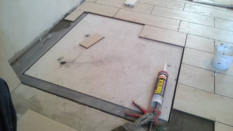 Kapağın montajı bizim için ilginç değil, bu yüzden derhal geliştirilmesine devam ediyoruz. Kullanılan kapak gizlidir, bu nedenle zemin şapı olan bir seviyede bulunur.