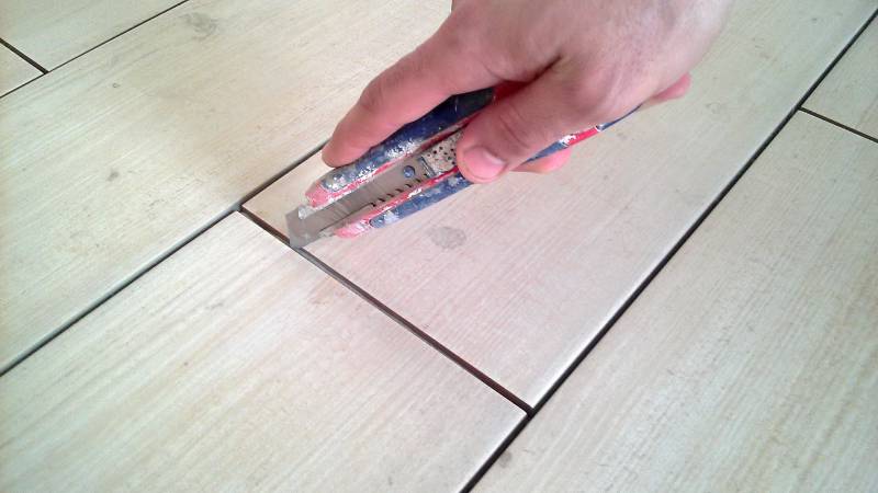 Başlamak için, haçları çıkarmamız ve bu zamana kadar kurumuş ve betona dönüşen çıkıntılı tutkalın tüm dikişlerini temizlememiz gerekir.