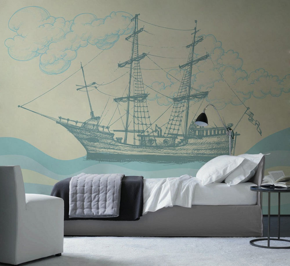Gemilerin, yatların, teknelerin veya gömleklerin görüntüsü ile duvar resimleri odaya romantizm atmosferi, macera ruhu, rekabet ruhu ve hayaller getirebilir. Gemilerin çeşitli görüntüleri hem modern bir iç mekana hem de klasik olana sığabileceğinden, herhangi bir nesil bunu beğenebilir.