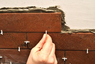 - Kurulum sırasında, her yöne dekoratif karolar arasına haçlar kurulur, bu da tekdüze dikişlerin korunmasına yardımcı olur.