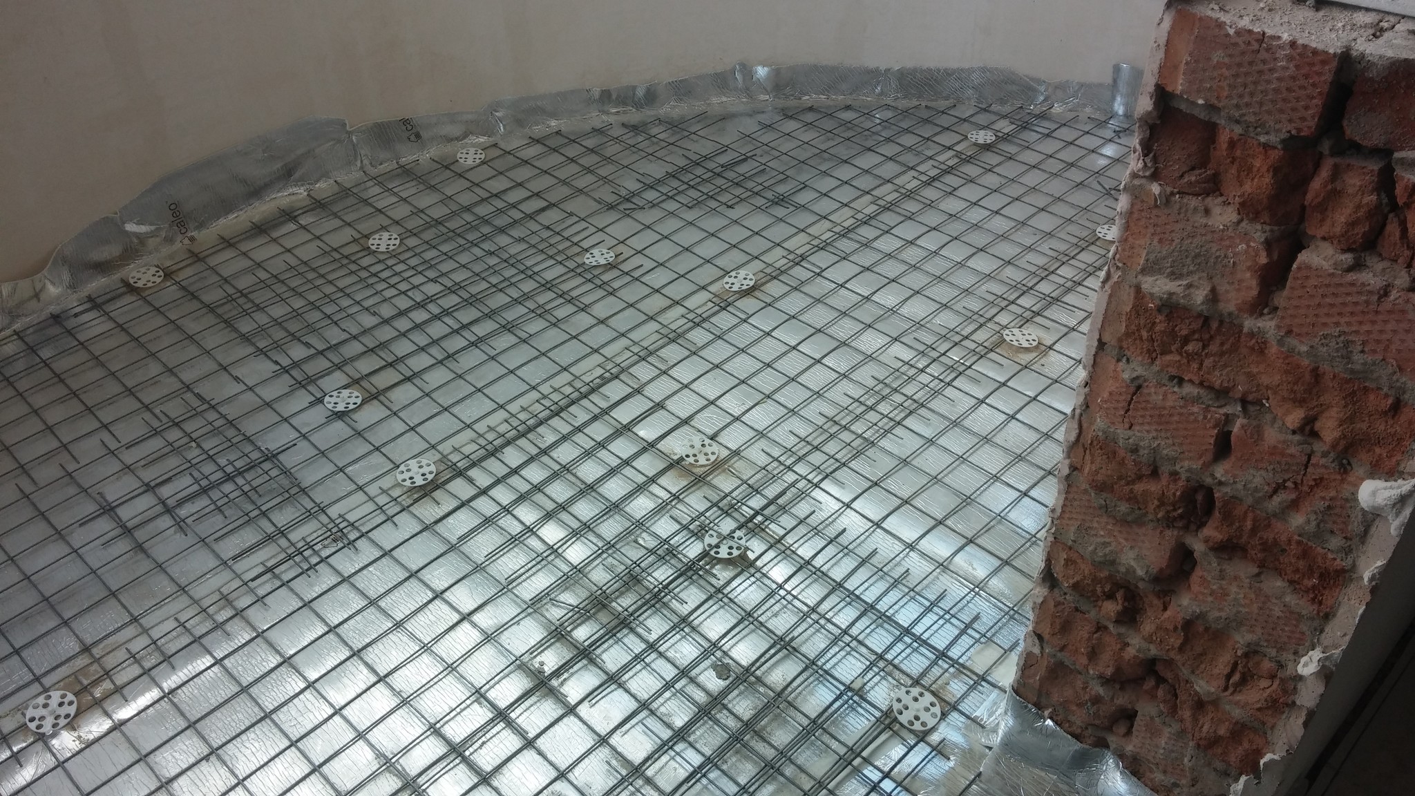 - Bir yerden ısıtma devresi döşenmesi planlanmaktadır. Şapın altındaki ağ, yerden ısıtma elemanlarının sabitlenmesi için temel oluşturur.