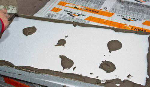 Duvardaki tutkal köpüğü | Bir yapıştırıcı madde bir spatula ile uygulanır, daha sonra malzeme tabakalarını dama tahtası desenine yapıştırın. Örneğin, tuğla işçiliği nasıl yapılır? Yalıtım arasındaki boşlukların minimum düzeyde olmasına dikkat edin. |