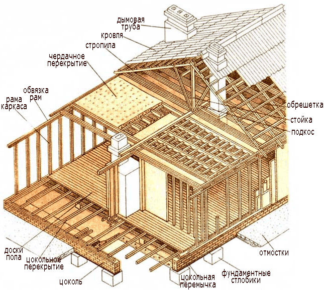 Çerçeve evler, duvarları olabilen ahşap veya metal bir çerçeve temelinde inşa edilir: