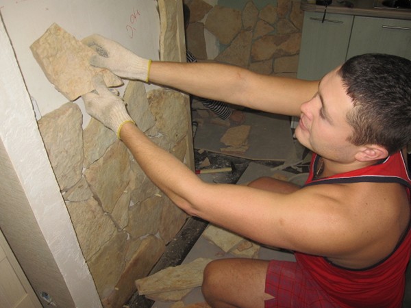 Böyle bir işten sonra, yapay taşı zaten monte edebilirsiniz.