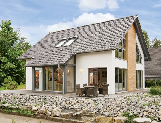 En règle générale, il s'agit d'un bâtiment de un à deux étages avec un toit à pignon symétrique.