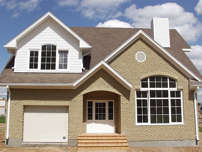 Tous les panneaux avant sont idéalement assemblés et permettent de revitaliser qualitativement une zone arbitrairement grande. - Soit dit en passant, si vous voulez que la maçonnerie soit naturelle, rien ne vous empêche de faire face aux murs de la maison avec de la vraie brique. Pour ce faire, il existe une brique creuse et légère, appelée parement.