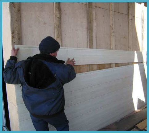 Cela vous évitera des ennuis lorsque la température baisse; - Lors du montage sur les coins, les fenêtres et les portes, un profil de départ est utilisé. A la jonction des panneaux et de cet élément, un dégagement de l'ordre d'un cm doit être prévu.