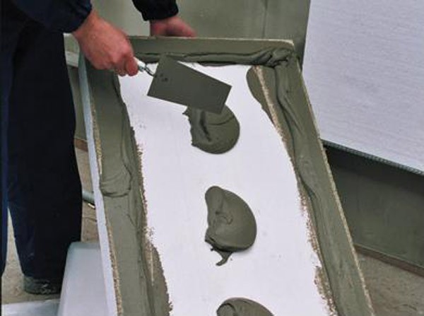 - Si la rugosité de l'avion est jusqu'à 15 mm. Appliquer ensuite le mélange sur le pourtour de l'élément et reculer du bord de l'ordre de 20 mm.