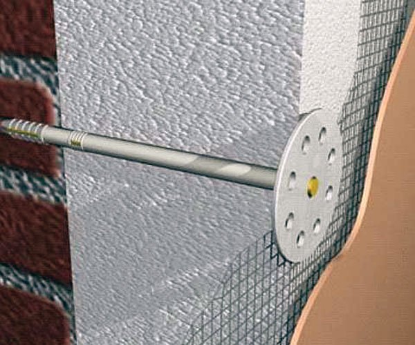Après la fixation, ils maintiennent et pressent qualitativement les feuilles de mousse sur la surface. Pour un mur de briques, le champignon doit pénétrer au moins 90 mm dans la surface dure, 50 mm doit être utilisé pour le béton et pour les structures cellulaires telles que les blocs de mousse, 120 mm doivent être introduits.